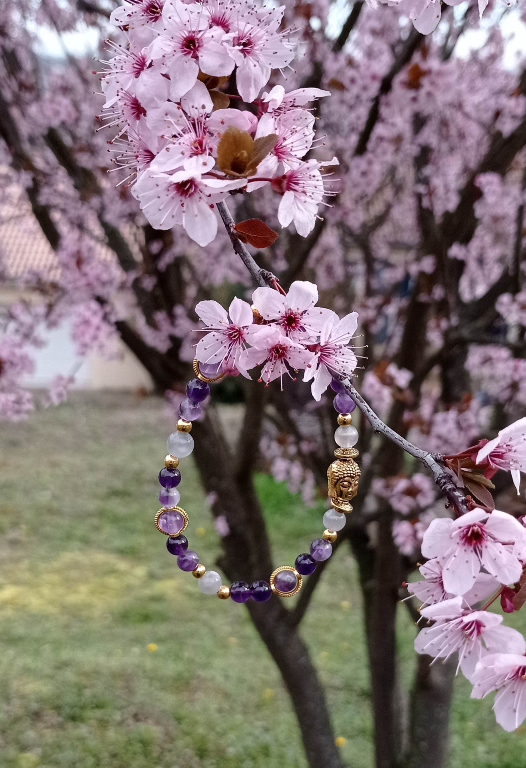 Portez ce bracelet avec grâce et intention, laissant sa beauté naturelle et son énergie apaisante vous accompagner tout au long de votre journée, que ce soit lors de moments de méditation paisible ou dans vos activités quotidiennes, pour une touche de sophistication et de spiritualité.