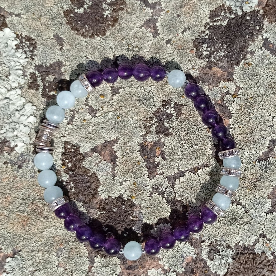 Bracelet Éclat d'Améthyste et Vague d'Aigue Marine