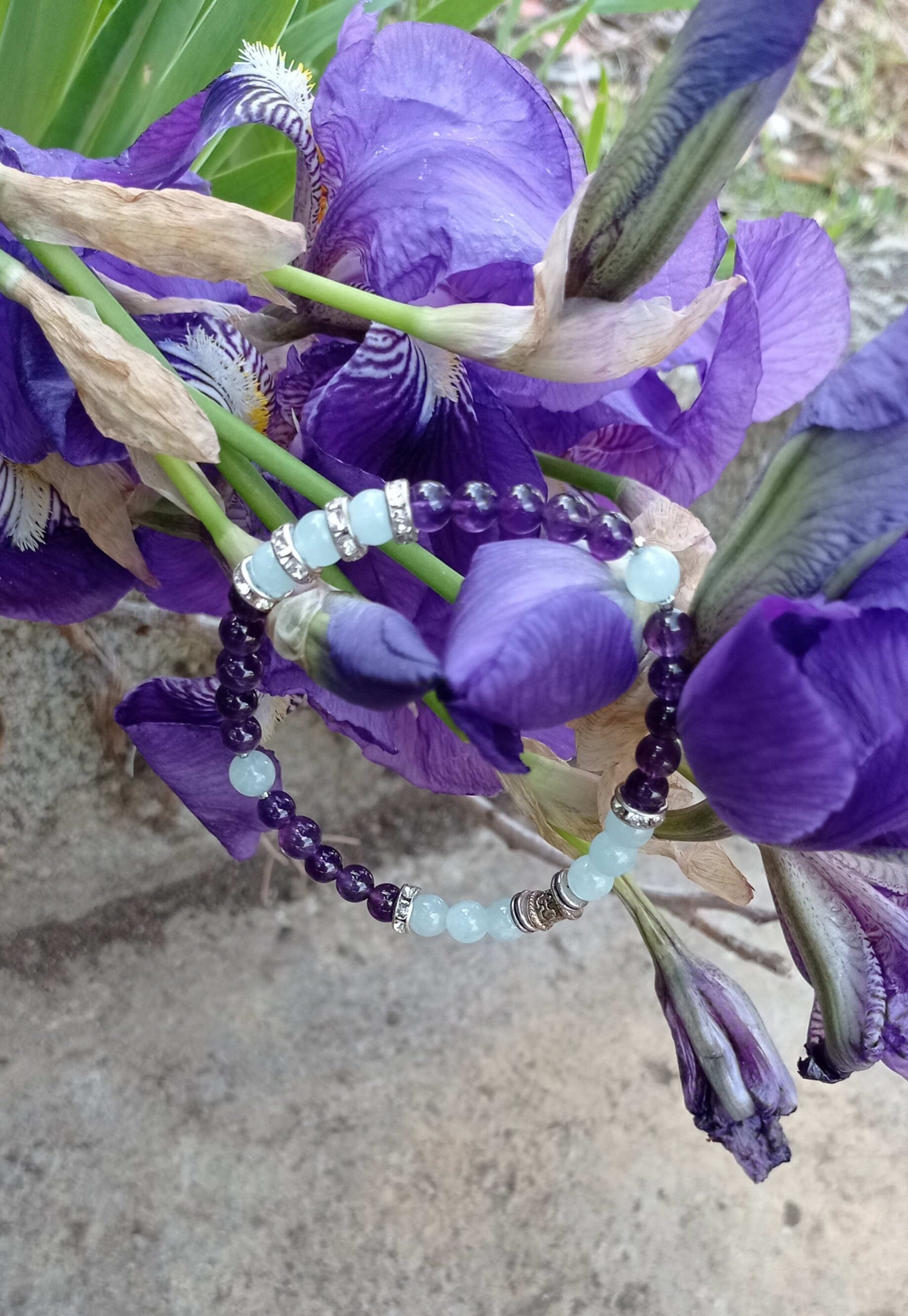 Chaque perle de 6mm est soigneusement sélectionnée, polie pour révéler toute sa beauté et montée à la main pour créer un équilibre visuel captivant. Les 20 perles d'améthyste offrent une profondeur violette apaisante, tandis que les 11 perles d'aigue marine évoquent les nuances cristallines de l'océan.